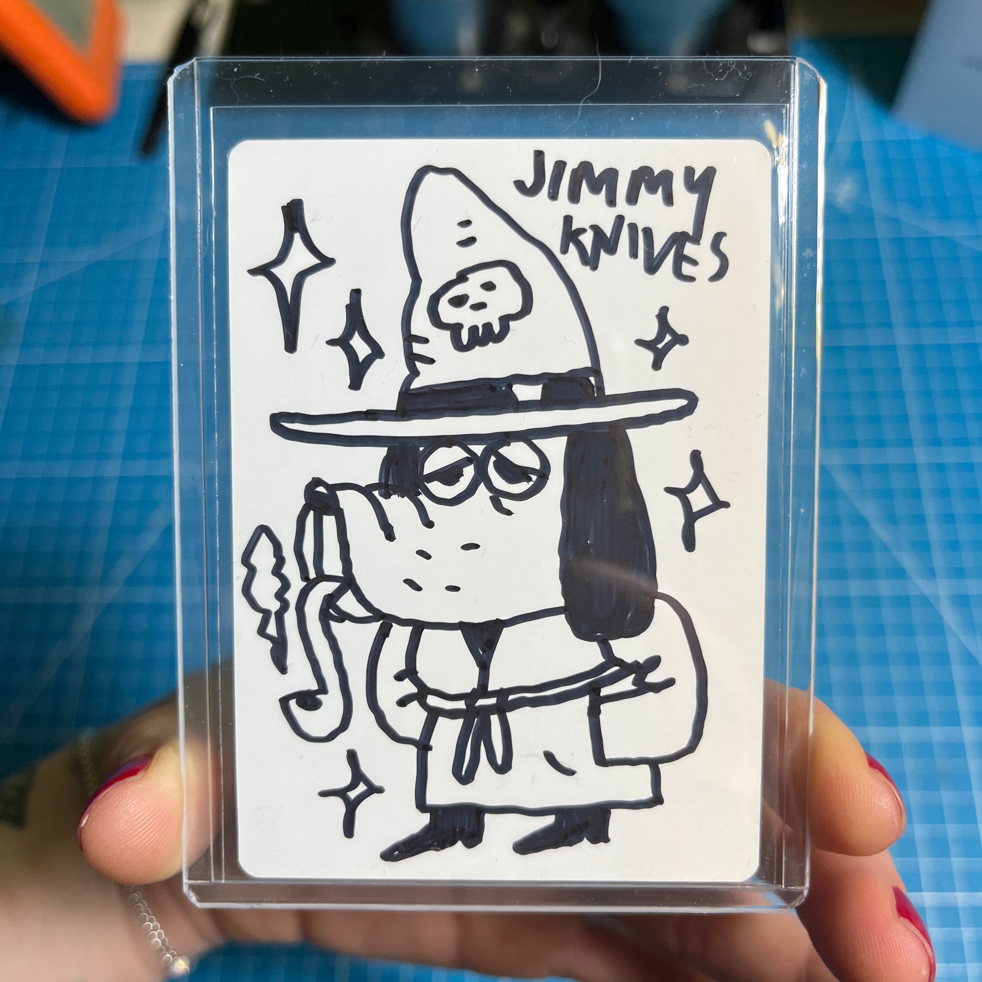 APs from my Krark-Clain Iron Works card, from Magic the Gathering's Secret Lair Countdown Kit: An Encyclopedia of Magic, released this year. Signed, with a sketch on the back. Cards come in a penny sleeve, inside a plastic top loader, and packed with cardboard shipping protectors and bubble wrap for maximum safety.
